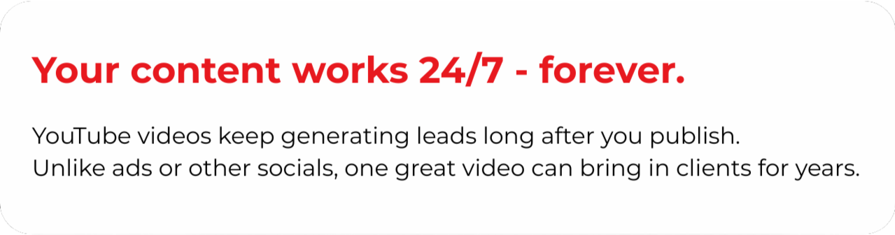 We handle everything from strategy, ideation, scripting, editing, thumbnails, seo, and posting completly done-for-you. You just batch film all the content in 3-4h each month. (No paid ads, No freelancers)